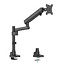Stevige metalen monitorarm voor een enkele monitor De AC8327 is een stevige metalen monitorarm geschikt voor een enkele monitor tot 40” en 12kg met VESA 75x75 en 100x100. De monitorarm is gemonteerd op een stevige stalen paal. Hierdoor kan de arm flexibeler worden gepositioneerd met het mechanische veersysteem. De maximale hoogte van de monitorarm is 63,5 centimeter. Gemeten vanaf het bureaublad tot het midden van de VESA-plaat.