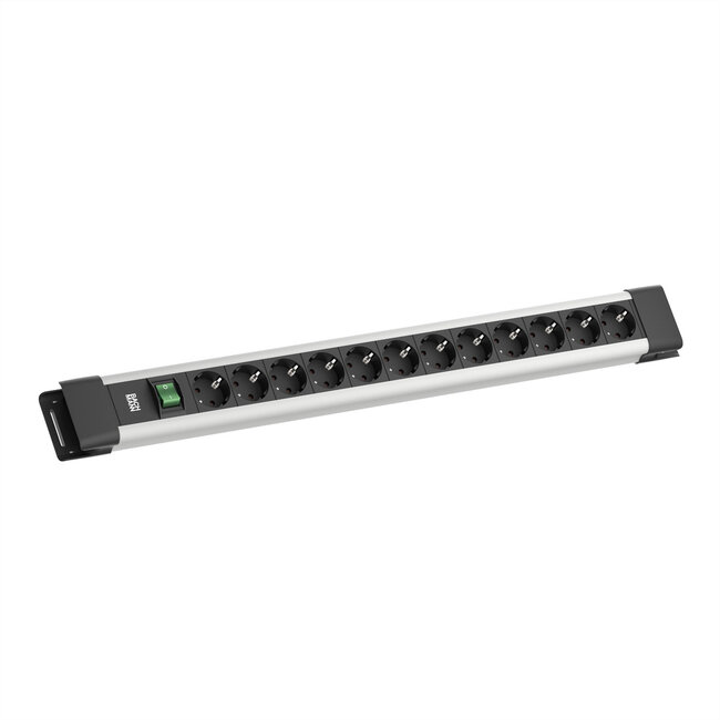 - 12xgeaarde stopcontacten, zwart - Grijs profiel met zwarte eindkappen - Voedingskabel 2,0 m H05VV-F3G1,5 mm², zwart - met geaarde haakse stekker CEE7/7 - verpakt in polyzak