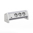 DESK ALU stekkerdoos geanodiseerd met verhoogde aanrakingsveiligheid 3xbeschermende contactdozen 35° wit kunststof onderdelen wit overeenkomstig RAL9010 stroomingang en -uitgang GST18 wit met BACHMANN-logo verpakt in een doos