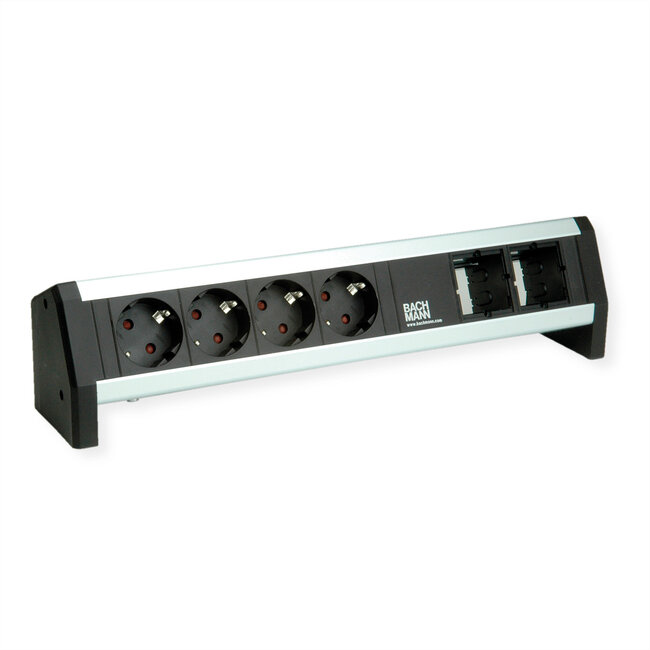 DESK stekkerdoos 4xbeschermende contactdozen 35° zwart, 2x lege speciale modules, stroomingang en -uitgang GST18 in een individuele doos,