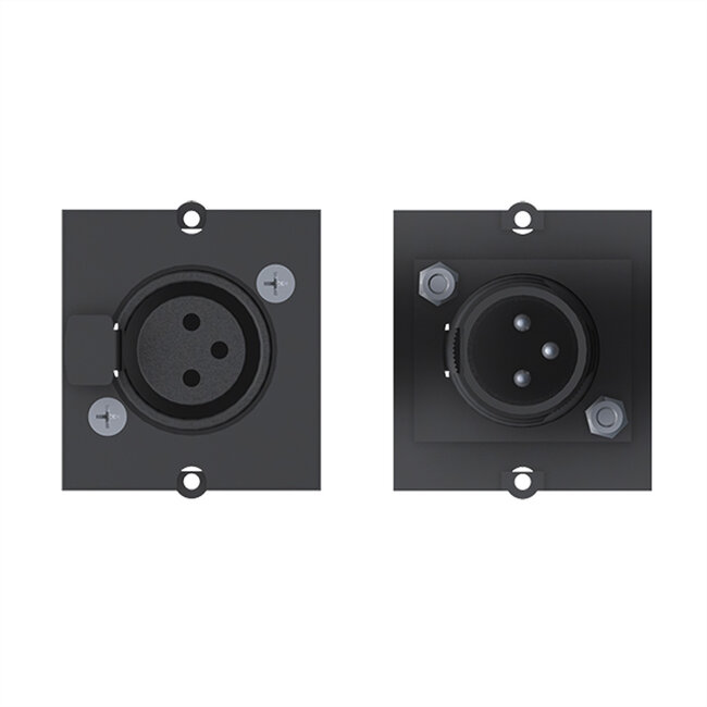 Frame XLR-aansluiting 3-polig Achter: schroefverbinding 3-polig met afdekkap achter incl. 2 Torx-schroeven met rode beschermhuls. Afdekkapje incl. 2 Torx-schroeven met rode beschermhuls