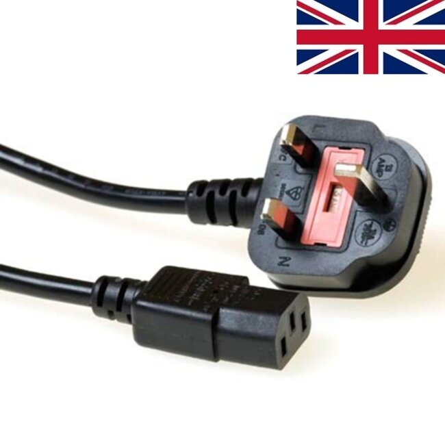ACT C13 (recht) - Type G / Groot-Brittannië (haaks) stroomkabel | max. 5A | 3x 0,75mm | zwart | 1 meter