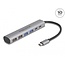 The USB hub by Delock can be connected via USB Type-C™ interface to a PC or laptop. It has four USB Type-A connectors as well as two USB Type-C™ connectors. Different USB devices such as docking stations, card reader, external enclosure etc. can be connected.