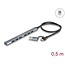This solid USB hub by Delock with metal housing can be connected to a computer, laptop or mobile device via the USB Type-A or USB-C™ interface. It expands the computer by seven USB ports. Different USB devices such as USB flash memory, card reader, external enclosure etc. can be connected.