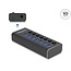 This solid USB hub by Delock with metal housing can be connected to a computer via the USB Type-A or USB-Câ„¢ interface. It expands the computer by 4 USB 5 Gbps Type-A female ports with fast charging function (5 V / 2.4 A) and 2 USB 10 Gbps Type-A female as well as one USB 10 Gbps USB Type-Câ„¢ port. Connected devices such as smartphones can be charged or data can be transferred.