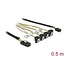 This SAS cable by Delock can be used to connect internal SAS devices, e.g. a controller with Mini SAS connector to 4 HDDs with SATA ports.