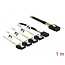 This reverse breakout cable by Delock can be used to connect internal SAS devices, e.g. an HDD backplane with Mini SAS connector to a controller with 4 SATA ports. The metal clips on the SATA connectors provide a snap-in connection.