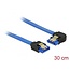 This SATA cable by Delock enables the internal connection of various SATA devices, e.g. HDDs, controller cards or Flash memories. It complies with the latest standard and provides a data transfer rate of up to 6 Gb/s. It is downwards compatible to the previous SATA versions, but can then only reach the respective transfer speed. When connecting this cable to a HDD the cable will be lead to the left. The metal clips on the connectors ensure that the cable reliably clicks into place.
