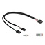 This cable allows the connection between devices or modules equipped with a USB pin header and a motherboard. The cable can be used e.g. to connect two pin header hubs to one pin header connector on the motherboard.