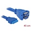 This USB 3.0 pin header cable by Delock can be internally connected to a free pin header male port of your mainboard. It expands your system by two additional USB 3.0-A female ports which can be screwed by using the four available installation holes. This cable is most suitable for self-designed computer systems.