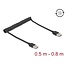 This coiled cable by Delock with EASY-USB Type-A male can be plugged into the appropriated USB female port in both directions. Thus the male connector can be used both-sided which makes the plug in easier.