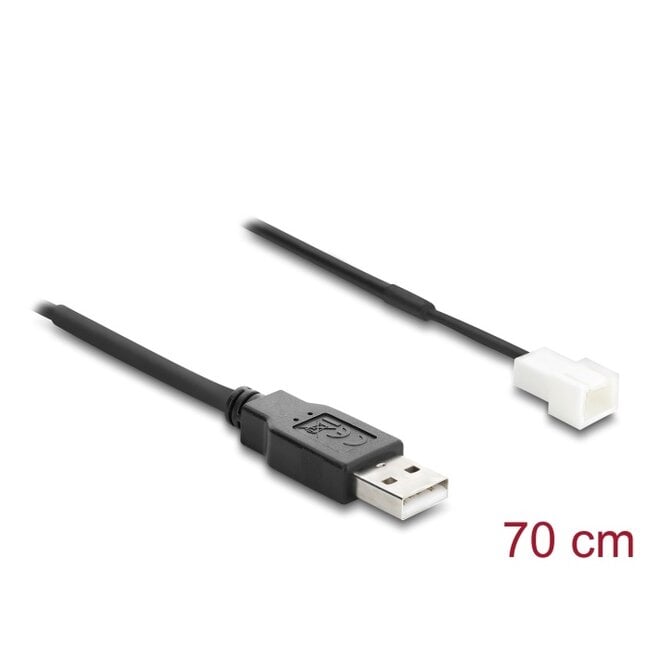This USB 3 pin fan cable by Delock allows you to reliably power a PC fan via a 5 V USB Type-A port. The cable is perfect for additional or external cooling projects and offers a simple solution for operating case fans.