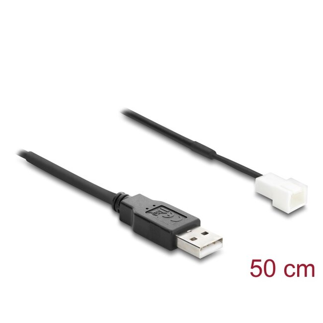 This USB 3 pin fan cable by Delock allows you to reliably power a PC fan via a 5 V USB Type-A port. The cable is perfect for additional or external cooling projects and offers a simple solution for operating case fans.