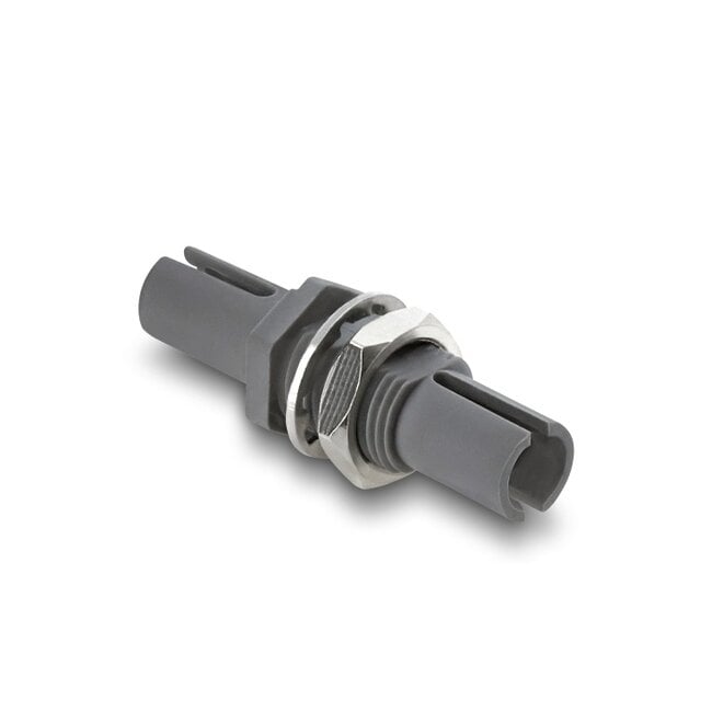 This coupler by Delock can be used to connect or extend two HFBR connectors. The adapter is provided for installation on a panel and can be used as a feed-through cable splice with two simplex connectors.