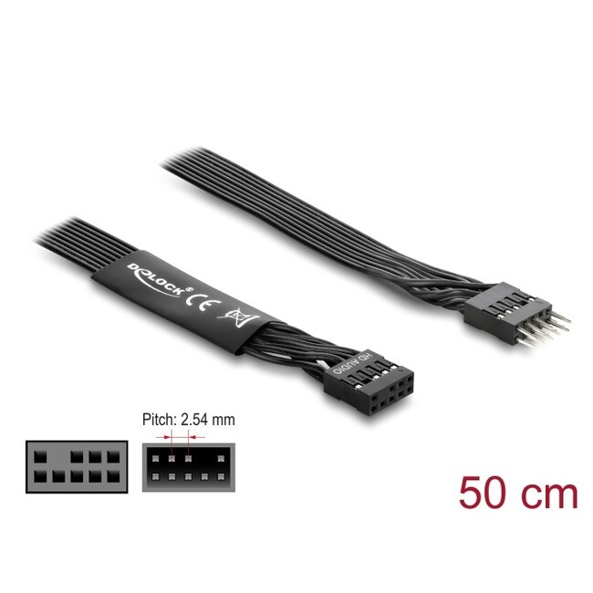 The HD Audio flat cable by Delock ensures a reliable and high-quality audio connection. With a wire thickness of 22 AWG, this cable offers stable signal transmission, ideal for use in home cinema systems, audio amplifiers, sound cards or other audio applications, and is perfect for extending the HD audio connection on a motherboard.