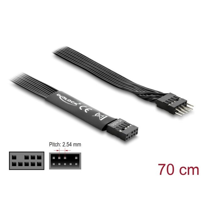 The HD Audio flat cable by Delock ensures a reliable and high-quality audio connection. With a wire thickness of 22 AWG, this cable offers stable signal transmission, ideal for use in home cinema systems, audio amplifiers, sound cards or other audio applications, and is perfect for extending the HD audio connection on a motherboard.