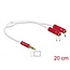 This adapter by Delock enables the connection to a common headset with two 3.5 mm stereo jack male connectors with standard 4 pin pin assignment to a smartphone or tablet with 3.5 mm 4 pin stereo jack female port. Just connect the connector of the headset to the respective female ports of the adapter. Optically it convinces with its fine textile shielding and with its gold-plated connector.