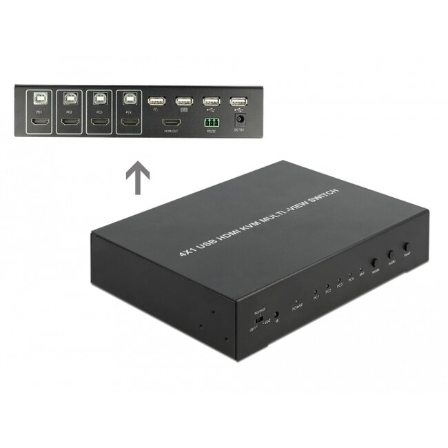 This KVM switch by Delock is a convenient solution for connecting four computers with HDMI output to one HDMI monitor. Furthermore, four USB 2.0 Type-A ports can be used to connect a mouse, keyboard, printer or USB drive.