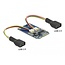 This Mini PCIe module by Delock expands a system by two USB 2.0 Type-A female ports. Various USB devices can be connected to these ports.