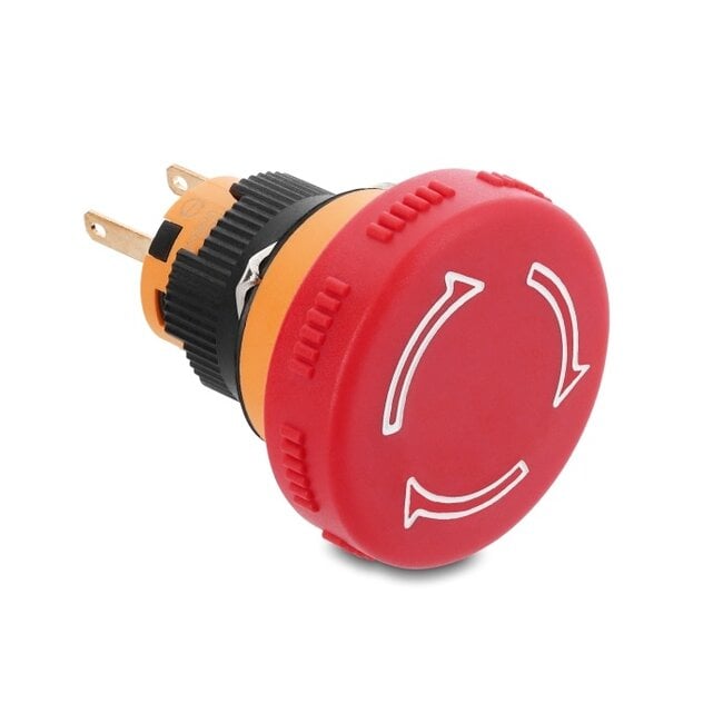 This mushroom-head push button by Delock is suitable for control and signaling applications in machines, systems, and control panels. The large red actuator head, with arrow marking, ensures highly visible and ergonomic operation.