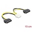Dieses Stromkabel von Delock dient der Versorgung eines Mainboards mit 8 Pin EPS (12 V) Anschluss an ein Netzteil mit SATA Buchse. Um eine zuverlässige Spannungsversorgung von 12 V zu gewährleisten, müssen beide SATA Stecker an das Netzteil angeschlossen werden.