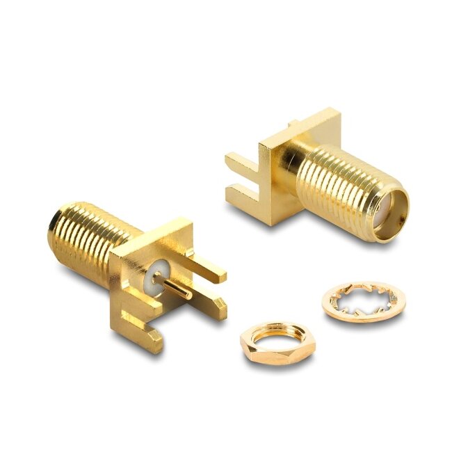 The SMA coaxial jack by Delock is suitable for solder mounting on circuit board edges with a maximum thickness of 1.7 mm. The gold coating prevents corrosion and ensures an optimal connection.