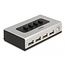 This bidirectional USB 2.0 switch by Delock allows a computer to use four USB peripheral devices. With the four buttons on the switch, the computer can establish a USB connection to the desired peripheral device. Printers, card readers, hard drives etc. can be specifically activated and made available to various applications.