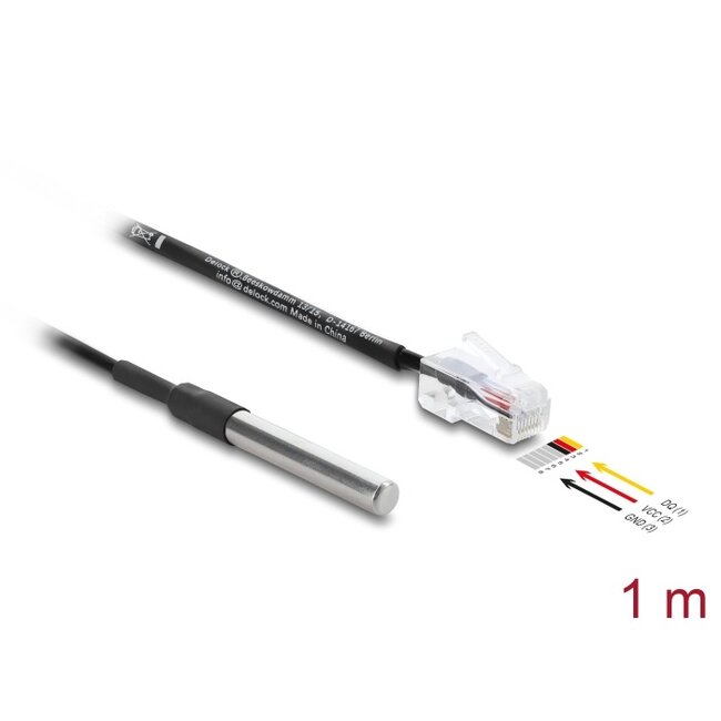 This temperature sensor by Delock reliably measures the ambient temperature and is ideal for use in smart home systems, server rooms, heating and cooling systems and industrial applications. Due to the digital DS18B20 sensor, it can be integrated directly into 1-wire systems.