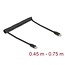 The coiled cable enables a flexible connection, is easy to store and unlike conventional cables, takes up less space. It also has a high restoring force and can be extended to three times its original length.