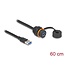 This USB cable by Delock can be used to connect various devices. The built-in jack can be attached, for e.g., to a housing with a suitable cut-out.