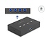 This USB switch by Delock allows to share a single USB 5 Gbps peripheral device with four different computer systems. This avoids the cost of purchasing multiple peripherals or the hassle of swapping cables from one system to another.