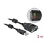 This USB Type-A to serial DB9 adapter with RS-232 tester by Delock combines two functions in one device. The RS-232 interface provides a connection for serial printers, measuring devices, machines etc. In addition, the nine LEDs in the connector provide simultaneous information on the status of the RS-232 data and the USB voltage supply. The RS-232 tester can be used for troubleshooting and helps to analyze the serial control and data lines.