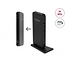 The Delock docking station can be operated either horizontally or vertically. A stand is included for vertical operation. Further the docking station can also be mounted to a 50 mm VESA bracket. The corresponding screw threads are provided on the bottom for this purpose.