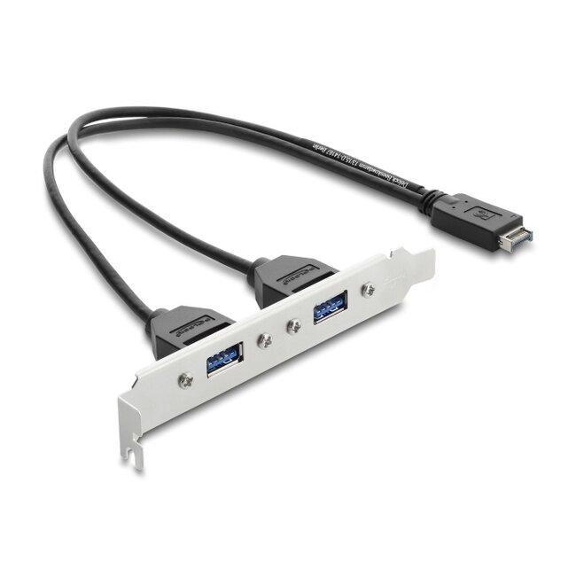 This USB cable by Delock allows you to connect two external USB 5 Gbps devices via an internal USB Type-E Key A connector on the motherboard. The two USB Type-A female are mounted on a slot bracket and can be easily inserted into a free PCIe slot in the case, ideal for expanding the USB connection options on the back of the PC.