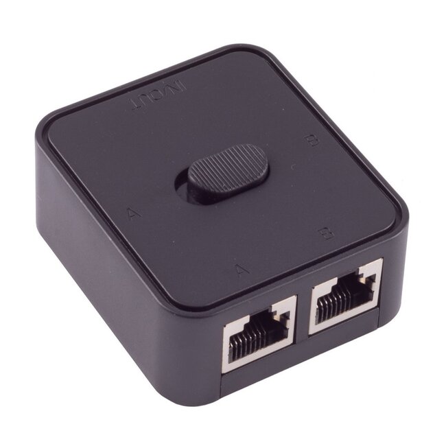 Gebruik deze mechanische netwerk switch om met 1 netwerkkabel tot maximaal 2 apparaten te verbinden met uw netwerk. De schakelaar is bi-directioneel en kan ook gebruikt worden om 1 apparaat te verbinden met 2 netwerken. De manuele schakelfunctie voorkomt conflicten.