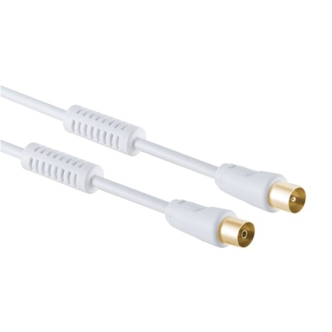 S-Impuls IEC (m) - IEC (v) coaxkabel | >100 dB + ferriet | CCS | verguld | recht | wit | 2 meter
