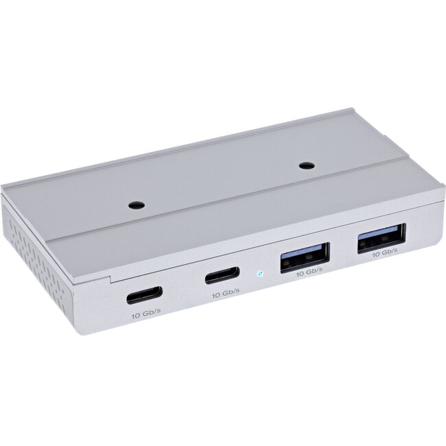 De elegante aluminium behuizing is robuust en zorgt voor een hoogwaardige uitstraling. De flexibele montage met magneet, schroef of kleefpad maakt een individuele plaatsing mogelijk, bijvoorbeeld op het tafelframe, de monitorarm of de behuizing. De hub is volledig plug-and-play-compatibel en direct klaar voor gebruik onder Windows, macOS en Linux. De stroomvoorziening gebeurt via het aangesloten apparaat, optioneel is er een 5 V DC-ingang beschikbaar.