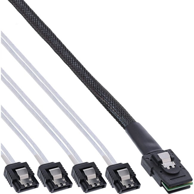 InLine® SAS verbindingskabel, Mini-SAS SFF-8087 naar 4x SATA, 1:1, OCR, 0,75m