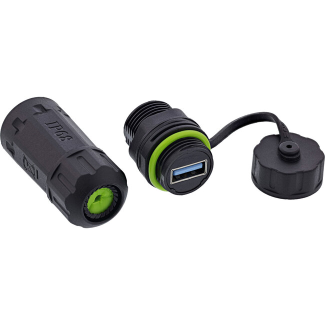 Met een USB-A-bus aan beide zijden is de afgeschermde koppeling ontworpen voor gegevensoverdracht tot 5 Gb/s en opladen met maximaal 2 A bij 5 V. Hij voldoet daarmee aan alle eisen voor een moderne USB-verbinding – zowel voor industriële toepassingen als voor professionele buiteninstallaties.