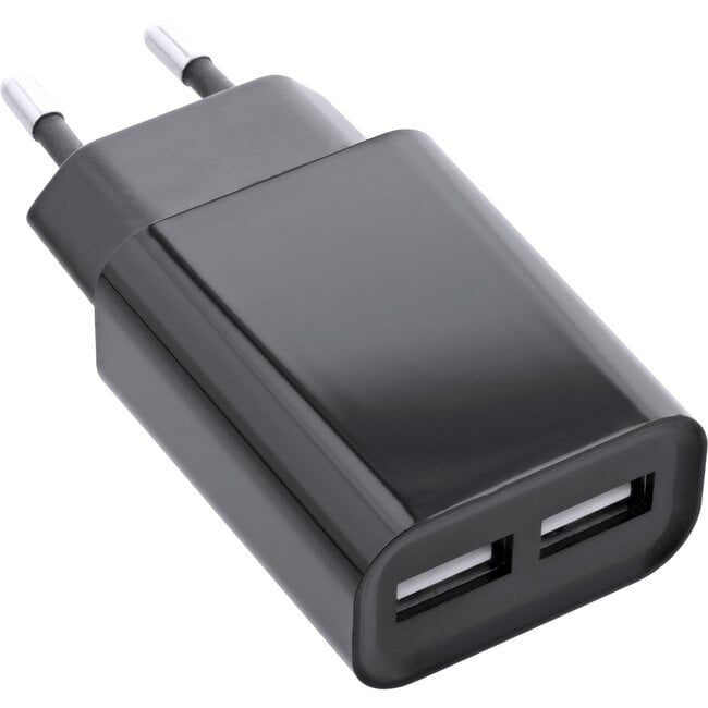 InLine® USB oplader DUO, voeding 2-voudig, 100-240V naar 5V/2.1A, zwart