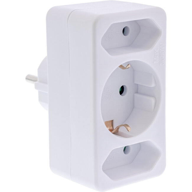 De InLine® wandcontactdoosadapter is de ideale oplossing voor iedereen die apparaten met verschillende stekkertypes tegelijk wil gebruiken. Hij heeft twee eurocontactdozen en een contactdoos met randaarde, waardoor flexibel gebruik met slechts één wandcontactdoos mogelijk is. De verhoogde aanraakbeveiliging is bijzonder praktisch en zorgt voor meer veiligheid in gevoelige omgevingen - thuis, op kantoor of in de bijkeuken. De hoge belastbaarheid tot 16 A / 250 V maakt de adapter ook de perfecte keuze voor krachtiger toepassingen. Het ruimtebesparende ontwerp maakt hem ideaal voor ruimtes met beperkte ruimte, zoals achter meubels of in werknissen. De discrete witte kleur past stijlvol in elke omgeving en onderstreept het hoogwaardige ontwerp van het product. De wandcontactdoosadapter is geschikt voor een breed scala aan apparaatcombinaties, van laptops en keukenapparatuur tot lampen en mediatechnologie.