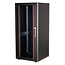 De netwerkkasten uit de ROLINE Basic serie zijn ontwikkeld om een eenvoudige en bijzonder kostenefficiënte uitbreiding van het netwerk mogelijk te maken. Strategisch geplaatste kabelinvoeren zorgen voor een moeiteloze installatie, afhankelijk van de toepassing. De kabelinvoer bevindt zich in het basischassis, beschermd door een geschroefde afdekplaat en gepositioneerd in het middengebied achteraan. Voor behuizingen vanaf 800 mm breedte worden links en rechts extra kabelinvoeren met kunststof deksels toegevoegd. Deze zijn ook geïntegreerd in het dak (één keer voor een kastbreedte van 600 mm, drie keer voor een kastbreedte van 800 mm). Het dakchassis heeft ook een uitsparing voor de installatie van een ventilatormodule. Binnenin zijn twee paar gegalvaniseerde 19" profielrails geïnstalleerd, die in beide richtingen kunnen worden gelezen en in diepte kunnen worden versteld. Ze zijn ook verbonden met extra diepteschoren in de kast. Elke kast bestaat uit een stevige staalconstructie met een materiaaldikte tot 1,5 mm plaatstaal.