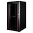 De netwerkkasten uit de ROLINE Pro serie zijn ontwikkeld om bijzonder handige en flexibele netwerkbekabeling mogelijk te maken. Met borstelinlaten in het dak- en bodemgedeelte (vanaf 26U en 800 mm kastbreedte), een opschuifbare inlaat in het bodemchassis met schuimrubberen afdichting en borstelstrips boven en onder de achterdeur (vanaf 26U) bieden ze een breed scala aan gebruiksmogelijkheden voor verschillende toepassingsscenario's. Verticale kabelkanalen met een deksel, geïnstalleerd naast de profielrails (vanaf 800 mm kastbreedte), maken het ontwerp compleet. Een trapvormige, afneembare afdekking met ventilatiesleuven verbetert de luchtcirculatie en maakt eenvoudige installatie van een ventilatormodule mogelijk. Binnenin zijn twee paar gegalvaniseerde 19" profielrails geïnstalleerd, die in beide richtingen kunnen worden gelezen en in diepte verstelbaar zijn. Ze zijn ook verbonden met extra diepteschoren in de kast. Elke kast bestaat uit een stevige staalconstructie met een materiaaldikte tot 1,5 mm plaatstaal.