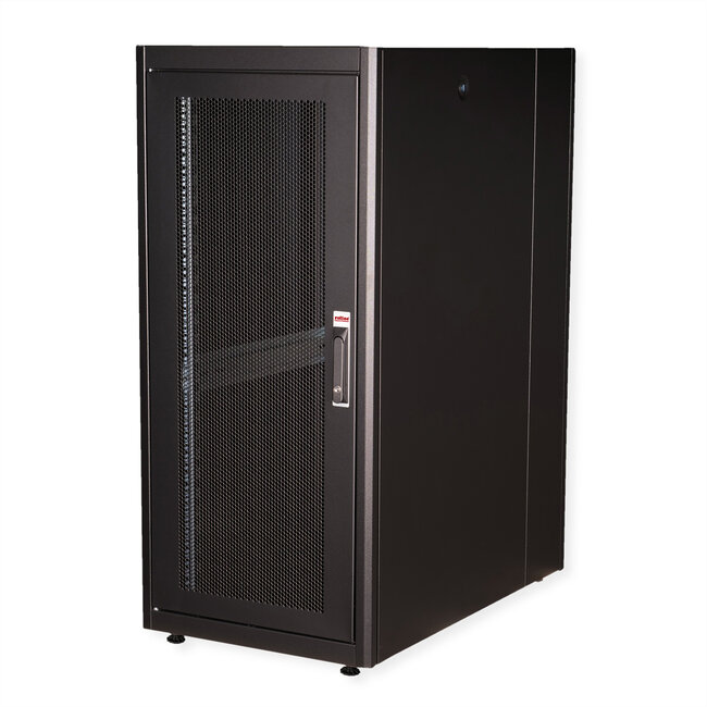 De netwerkkasten uit de ROLINE Basic serie zijn ontwikkeld om een eenvoudige en bijzonder kostenefficiënte uitbreiding van het netwerk mogelijk te maken. Strategisch geplaatste kabelinvoeren zorgen voor een moeiteloze installatie, afhankelijk van de toepassing. De kabelinvoer bevindt zich in het basischassis, beschermd door een geschroefde afdekplaat en gepositioneerd in het middengebied achteraan. Voor behuizingen vanaf 800 mm breedte worden links en rechts extra kabelinvoeren met kunststof deksels toegevoegd. Deze zijn ook geïntegreerd in het dak (één keer voor een kastbreedte van 600 mm, drie keer voor een kastbreedte van 800 mm). Het dakchassis heeft ook een uitsparing voor de installatie van een ventilatormodule. Binnenin zijn twee paar gegalvaniseerde 19" profielrails geïnstalleerd, die in beide richtingen kunnen worden aangebracht en in diepte kunnen worden versteld. Ze zijn ook verbonden met extra diepteschoren in de kast. Elke kast bestaat uit een stevige staalconstructie met een materiaaldikte tot 1,5 mm plaatstaal.