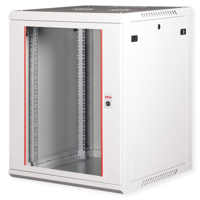 De wandbehuizingen uit de ROLINE Basic Plus serie zijn speciaal ontworpen voor flexibele netwerkbekabeling. Deze serie vormt een ideale balans tussen de ROLINE PRO en ROLINE Basic serie. De bodemplaat en het dak zijn voorzien van een gestanste kabelinvoer. Bovendien kan in het dak een ventilatormodule worden geplaatst. Binnenin zijn twee paar gegalvaniseerde profielrails met hoogte-eenheden van 483 mm (19") geïnstalleerd, die ook in diepte verstelbaar zijn. De robuuste stalen constructies van de kasten zijn gemaakt van sterk plaatstaal en zijn verkrijgbaar met poedercoating in grijs (RAL 7035) of zwart (RAL 9005). De zijpanelen zijn voorzien van een snelsluiting en zijn afneembaar, wat de toegankelijkheid verbetert. Een optioneel slot kan ook in de zijpanelen worden geïnstalleerd. Wandmontage gebeurt in twee eenvoudige stappen: Eerst wordt het achterpaneel vastgeschroefd aan de muur en vervolgens verbonden met de behuizing. Optionele stelvoeten of wielen kunnen worden gebruikt om de kasten vrijstaand te maken.