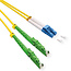 Hoogwaardige glasvezelkabel met aan de ene kant de beveiligde, geborgde APC gepolijste LSH aansluiting en aan de andere kant de UPC gepolijste LC aansluiting.