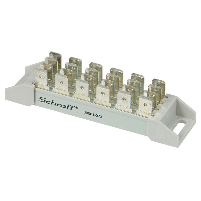 Stroomrail, 4-polig voor 6,3 x 0,8 mm lamellenklemmen, 4-polig voor 6,3 x 0,8 mm lamellenklemmen