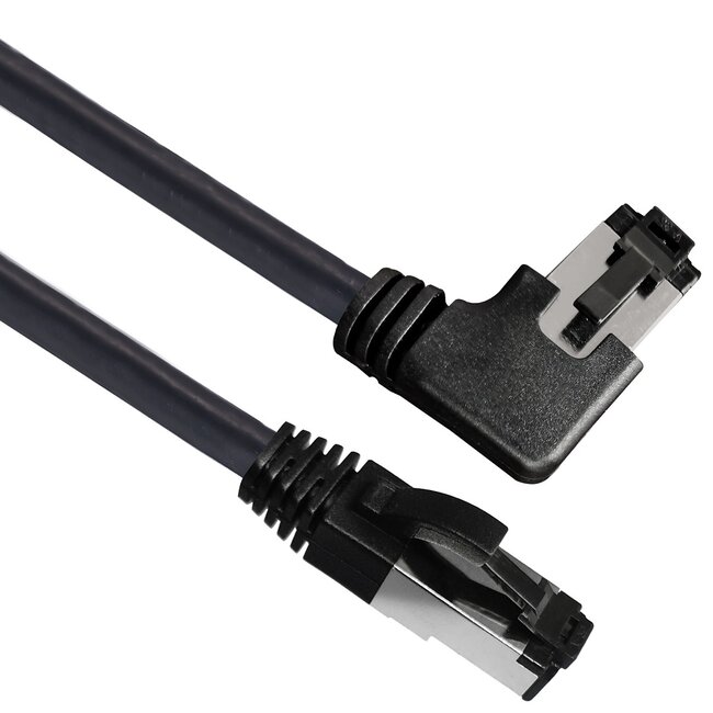 De kabel beschikt over een 90° haakse connector aan één zijde, waardoor deze kabel uitermate geschikt is voor patch panels of andere toepassingen waarbij de ruimte beperkt is en een 90° verbinding ruimte bespaard. Deze kabel is geschikt voor patchtoepassingen waarbij de kabel naar rechts weggeleid dient te worden (indien de 'klik klem' ingang bij de RJ45 aansluiting aan de onderzijde zit).