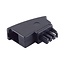 Gebruik deze adapter om een kabel met RJ11 connector van een telefoontoeste te verbinden met een wandcontactdoos met TAE-F aansluiting.