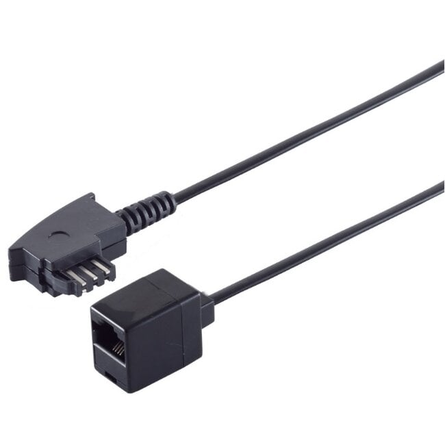 Gebruik deze adapter om een kabel met RJ45 connector kabel vanaf een telefoontoestel, telefooncentrale, DSL-router of DSL-modem te verbinden met een wandcontactdoos met TAE-F aansluiting.